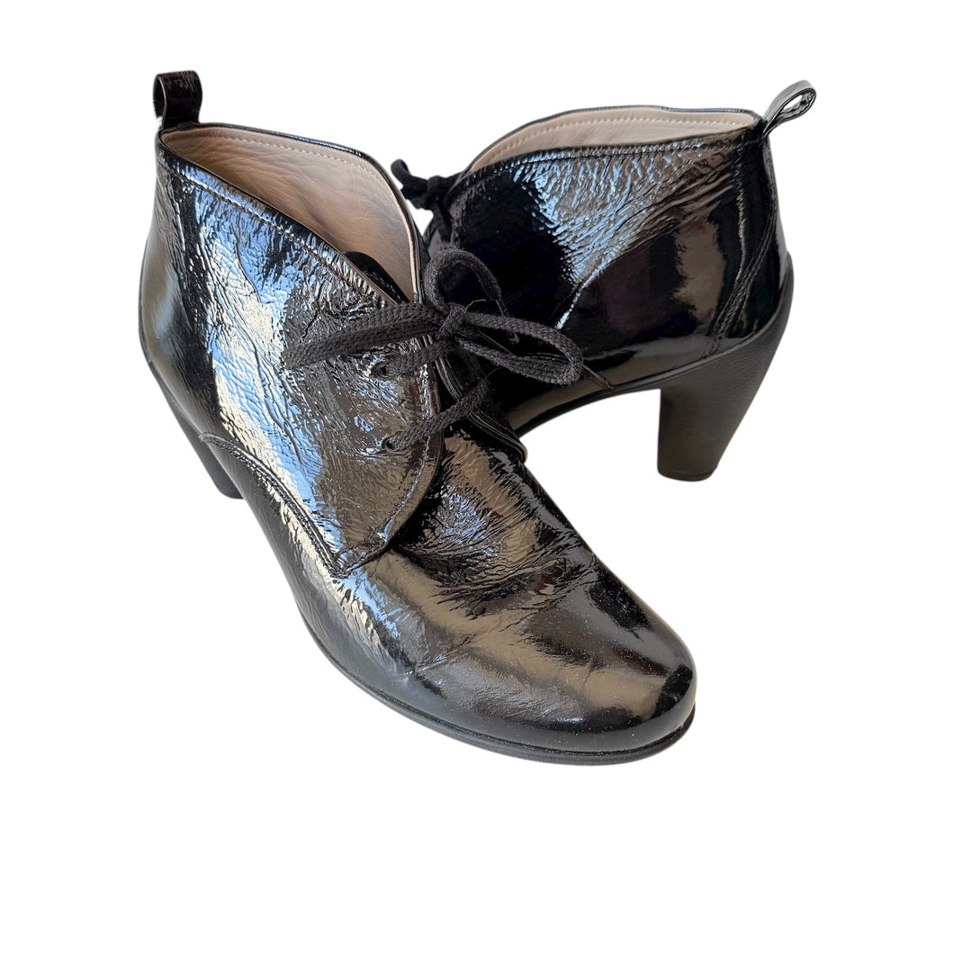 Ecco Black Patent Lace Up Heeled Boots Size 10