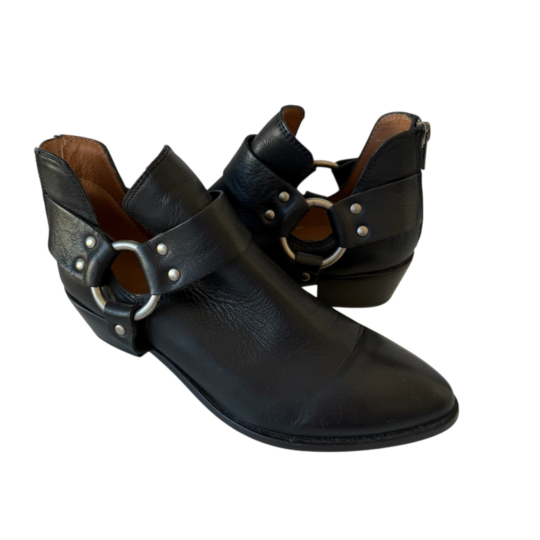 Frye Black Leather Ray Harness Back Zip Booties Size 7