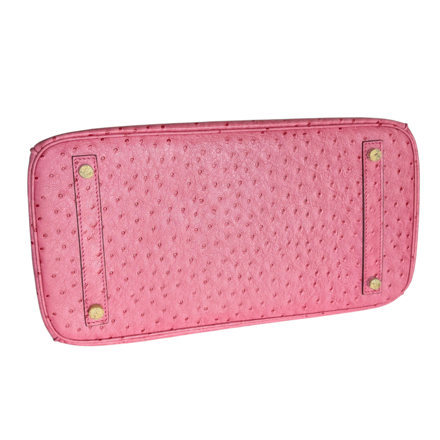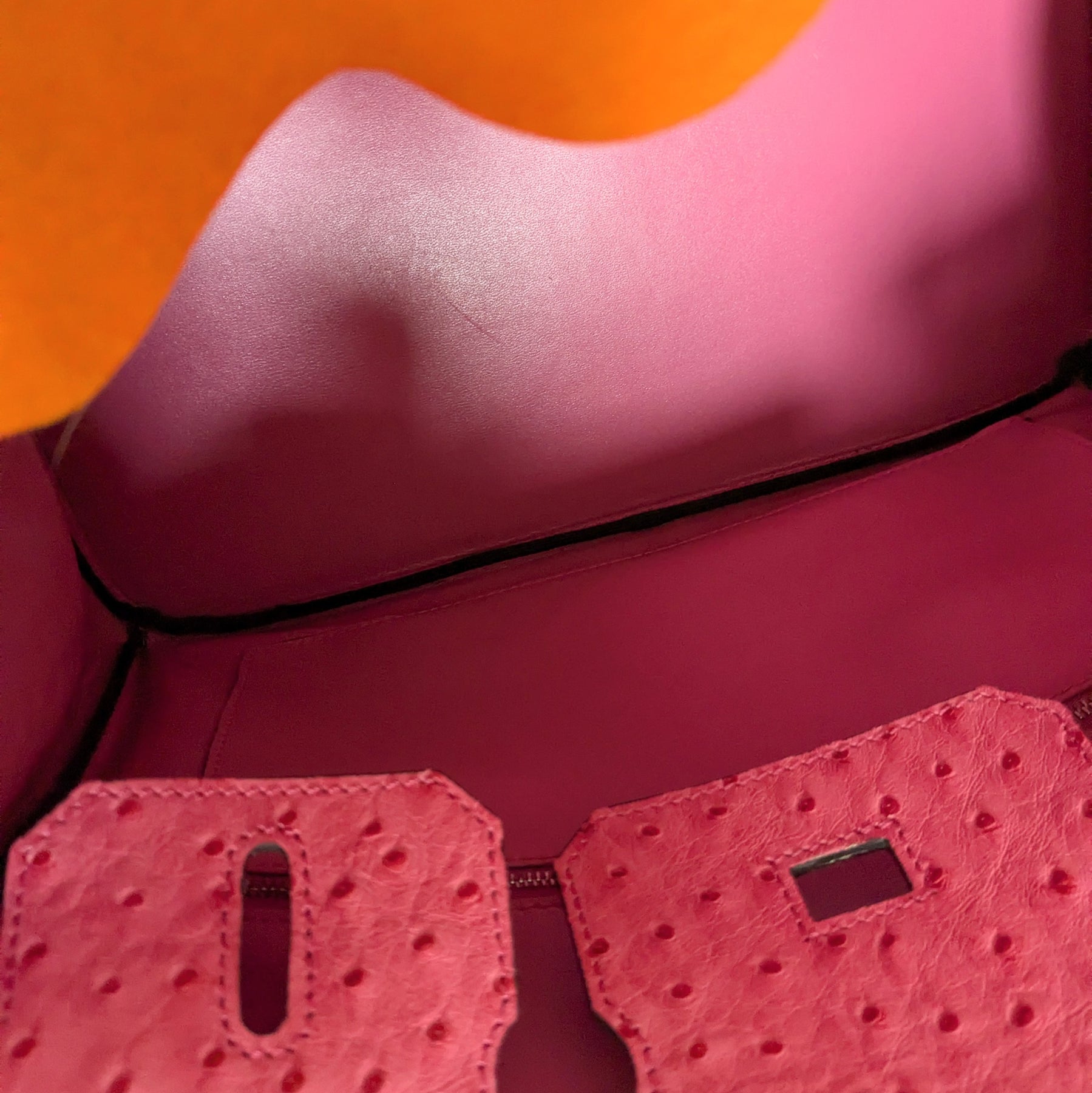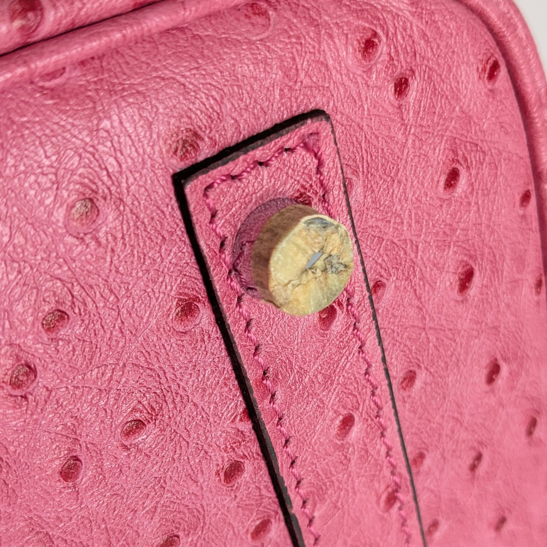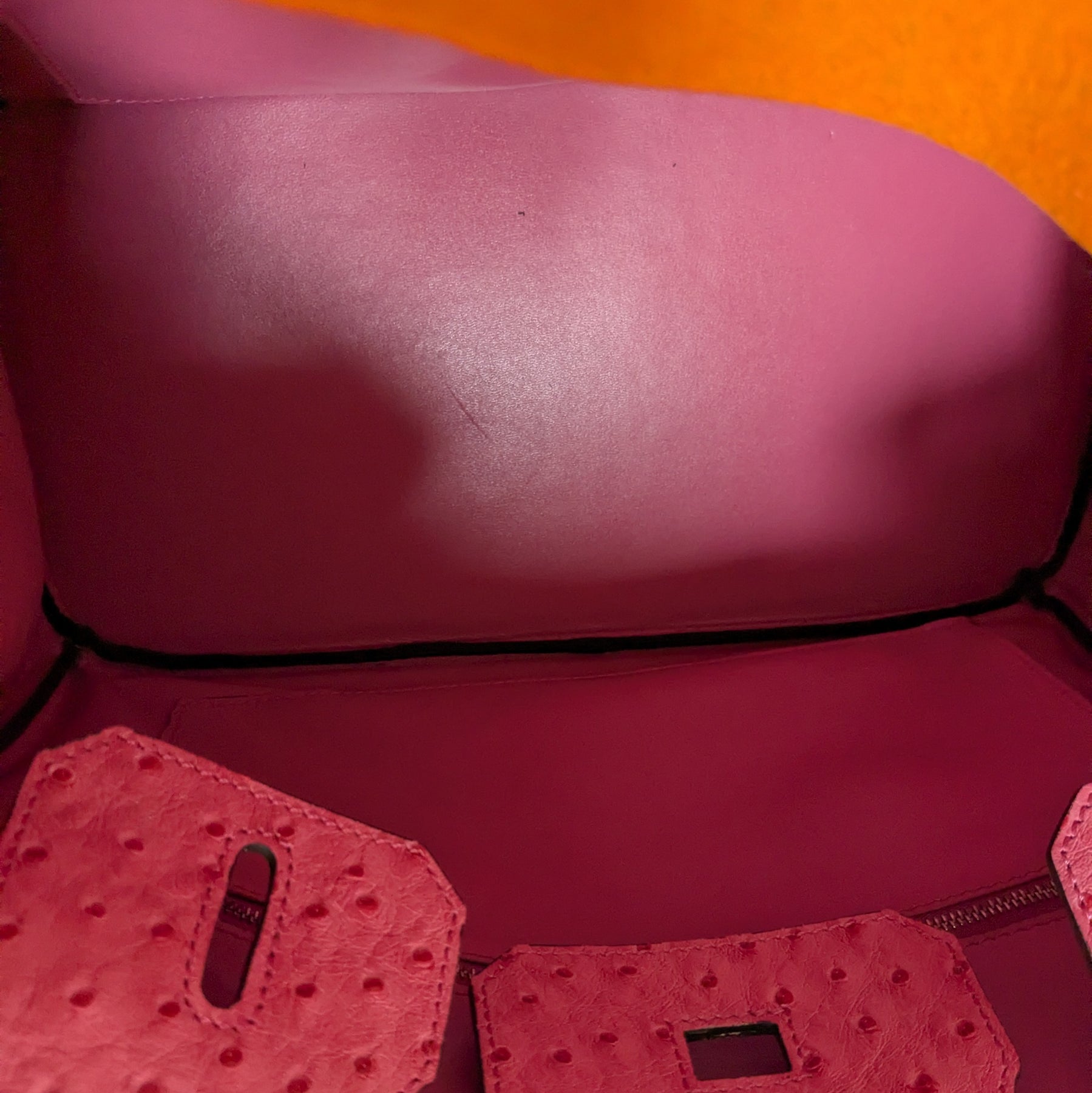Hermes iconic satchel in ostrich embossed hot pink leather