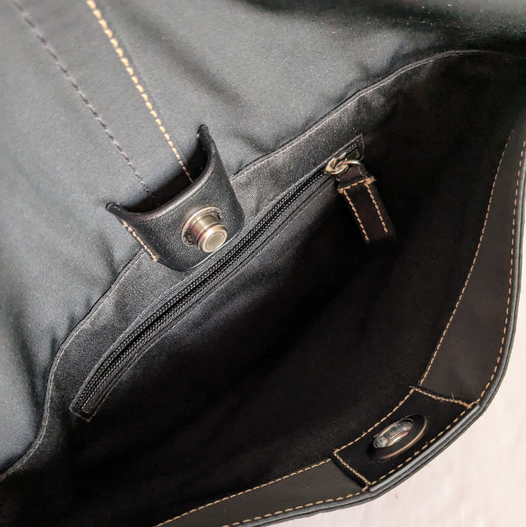 Vintage Coach messenger bag in black nylon with black leather trim