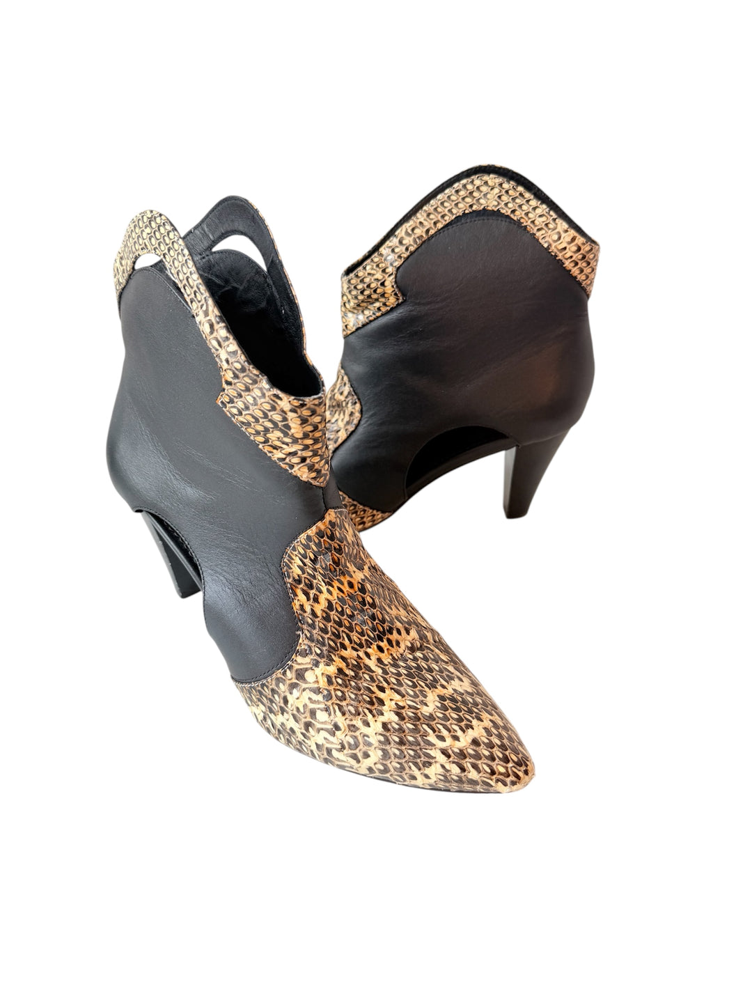 Lisa Leroy Black Leather & Snakeskin Cut Out Booty Size 7