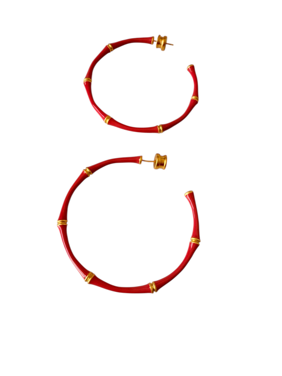 Julie Vos Bamboo Hoop Pierced Earrings In Pink/Coral & Goldtone