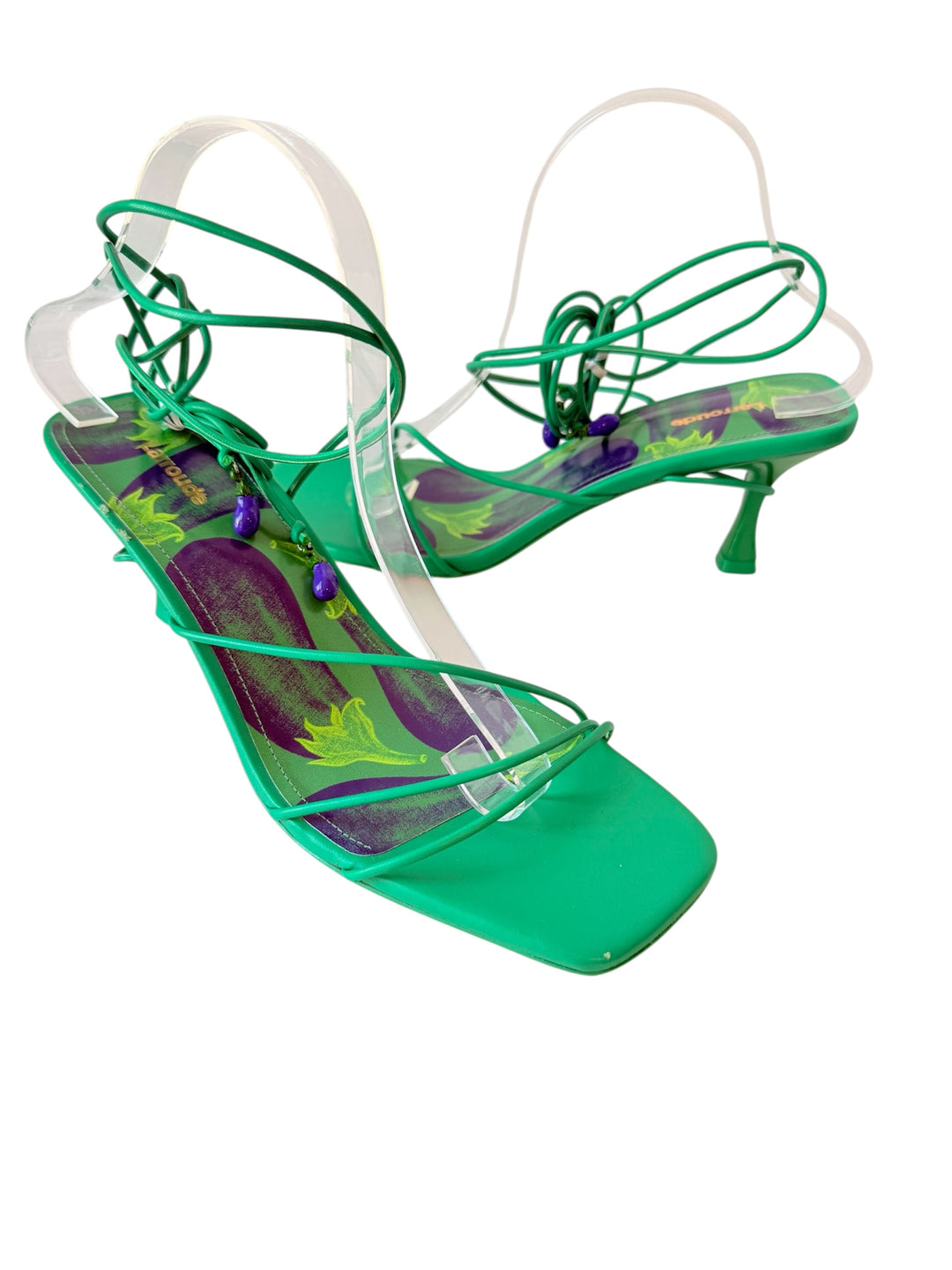 Larroud’e Nadia Green Leather Ankle Lace Up Sandals Size 10 New