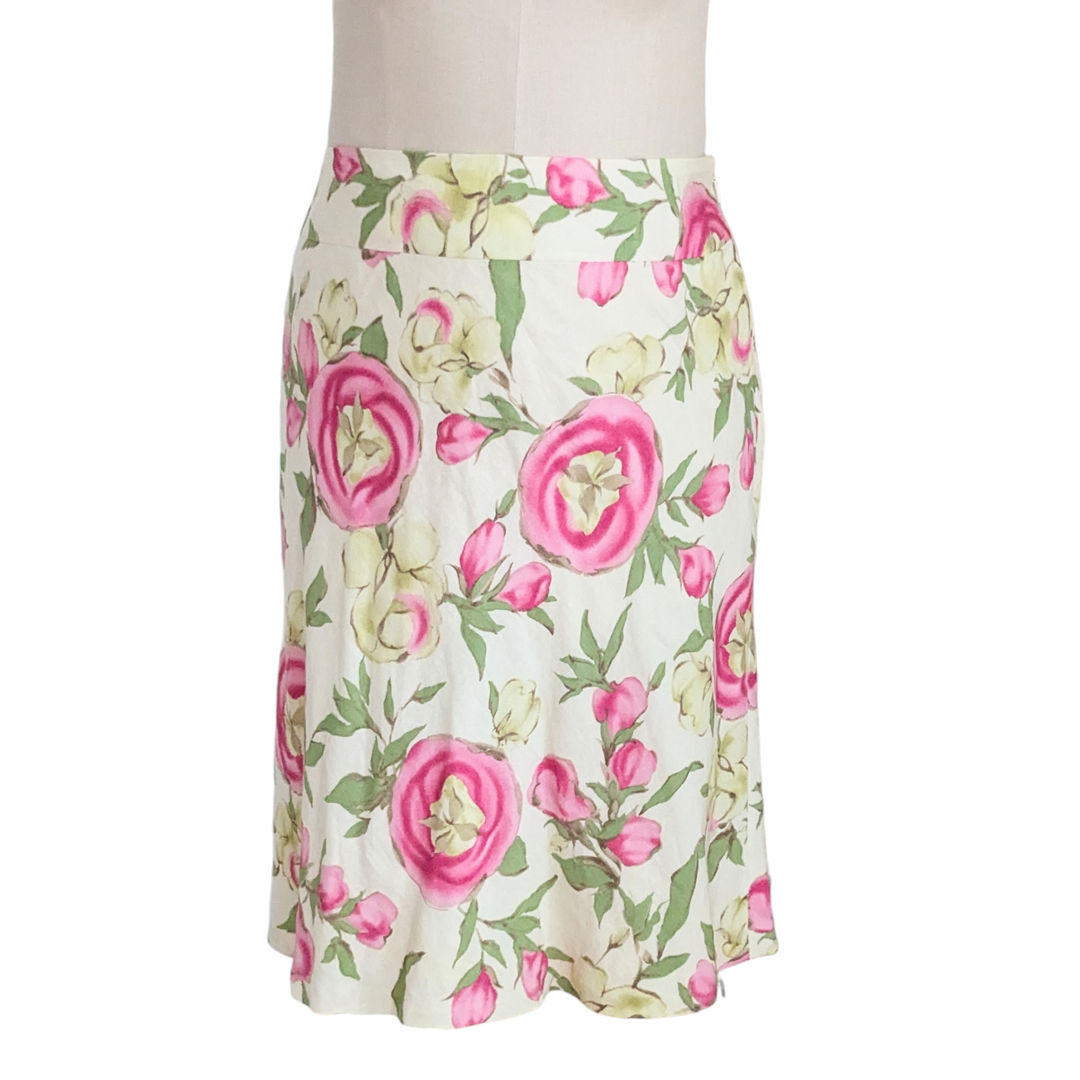 LOFT Floral Print Linen Skirt Size 16