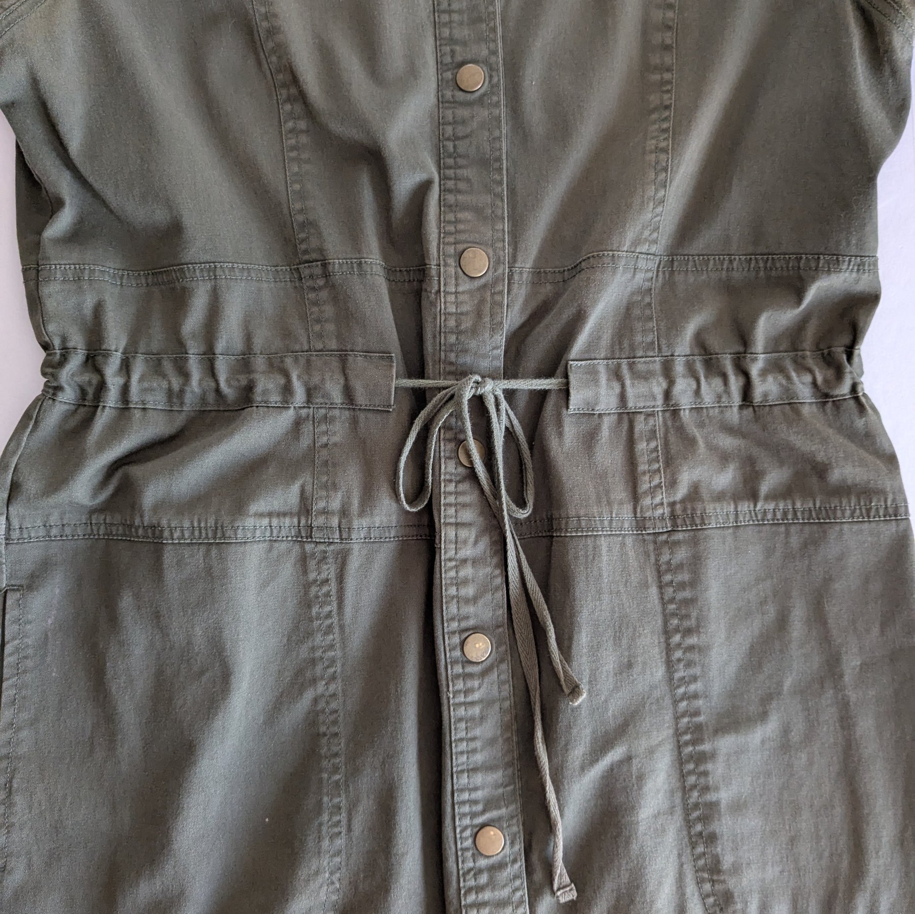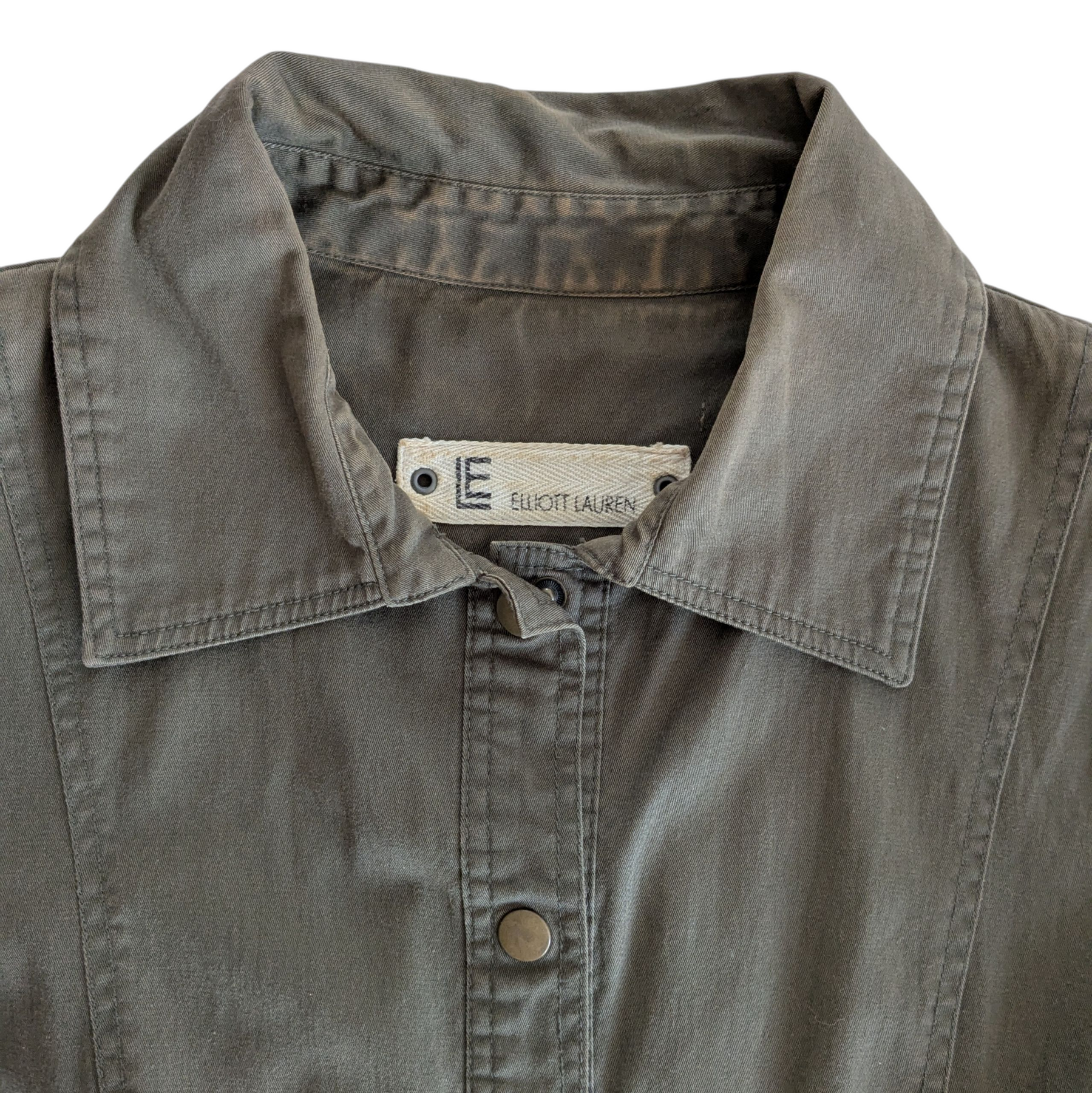 Elliott Lauren button up dress in olive green garment dyed cotton