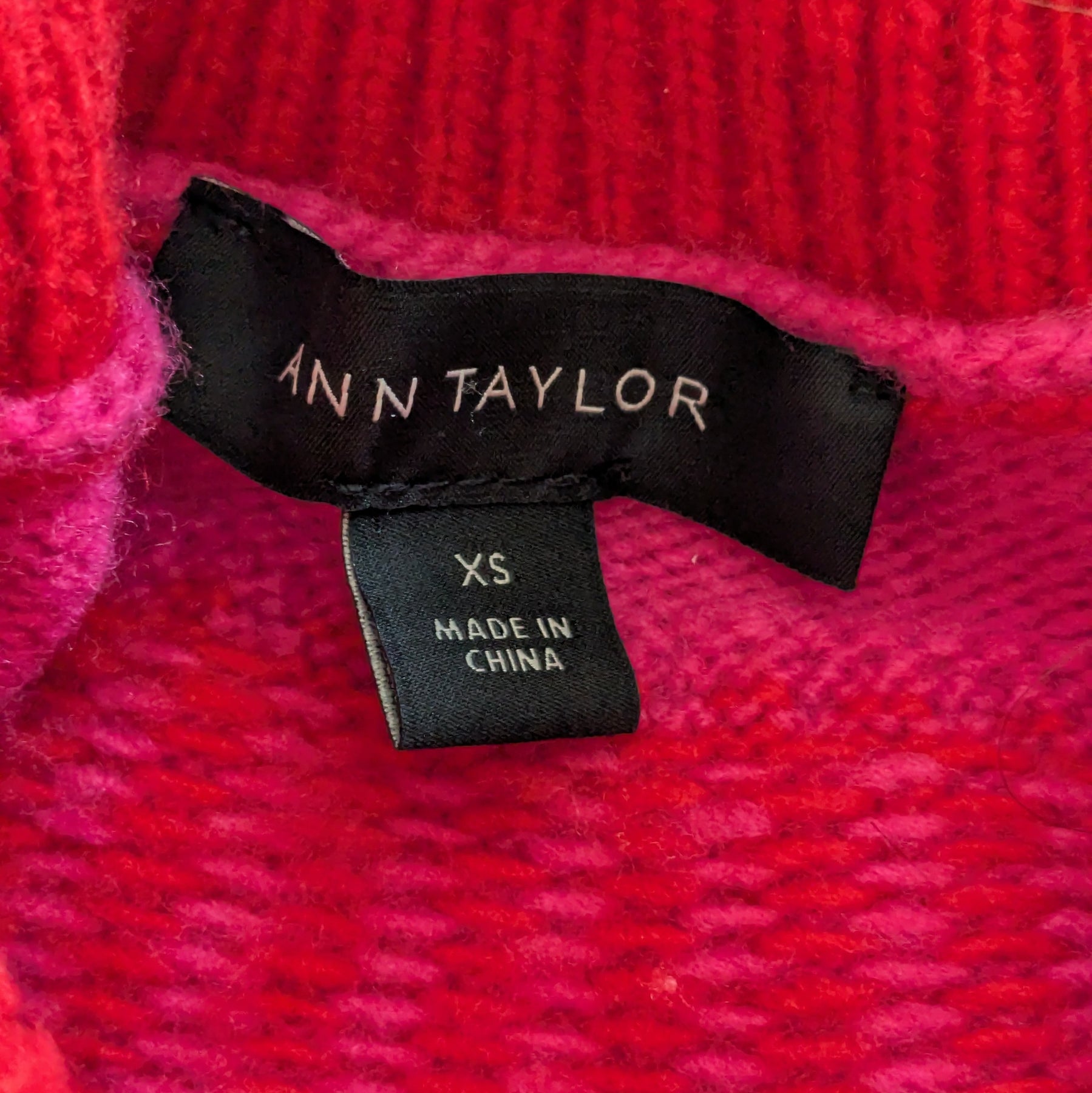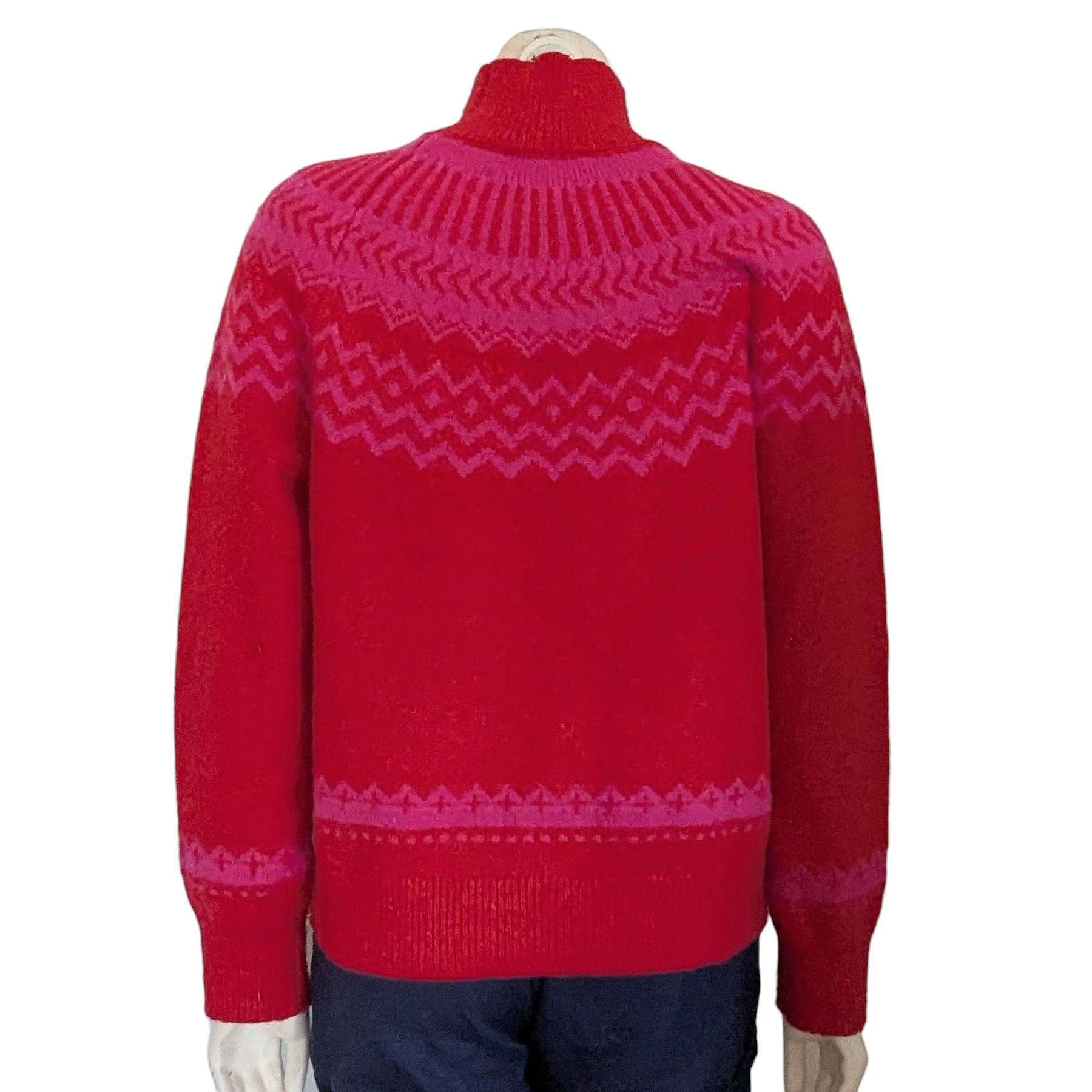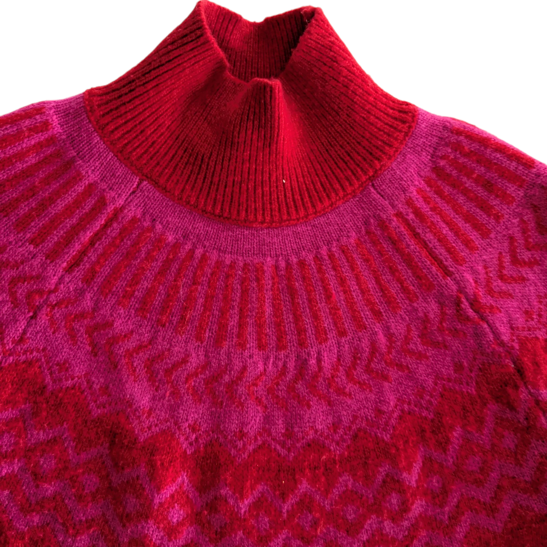 Ann Taylor turtleneck sweater in red and hot pink nordic print