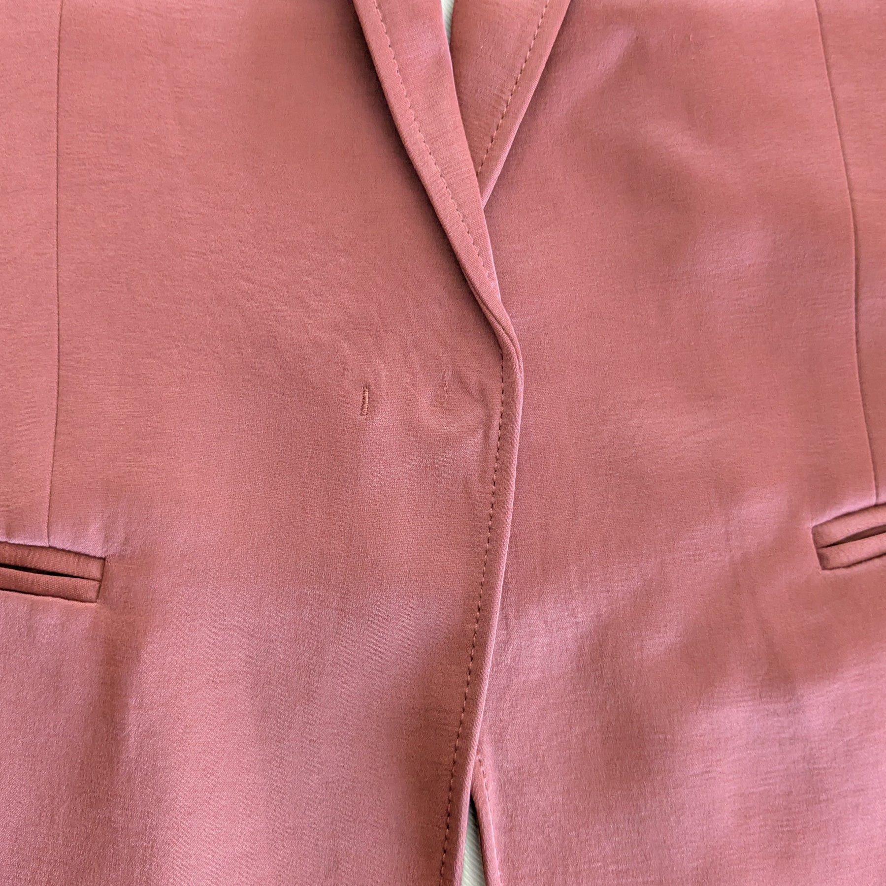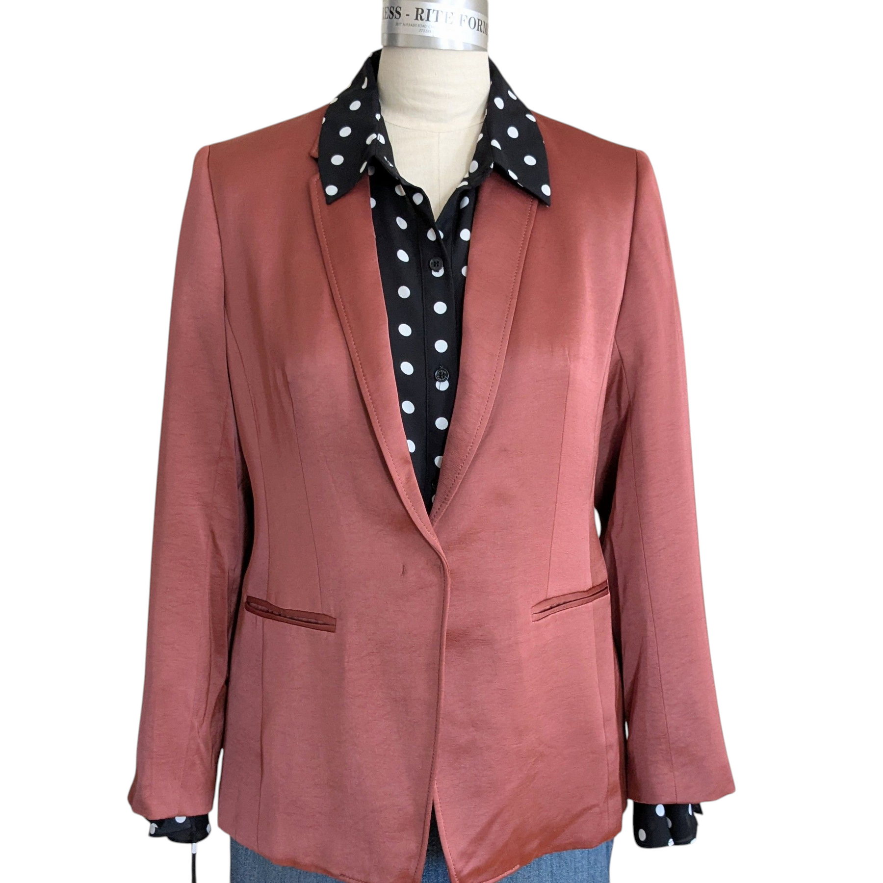 Shell 59% rayon, 41% polyester. Lining 100% polyester. Dry clean